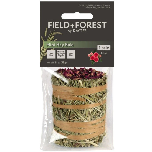 Field+Forest Mini Hay Bales are made with long strand Kaytee timothy hay and topped with rose for a fun and convenient way to treat your pet. All-natural, high fiber timothy hay makes this a healthy part of your pets feeding routine. Each added topping adds variety and foraging opportunities. Offer your pet Field+Forest Mini Hay Bales for an enriching and nutritious experience.