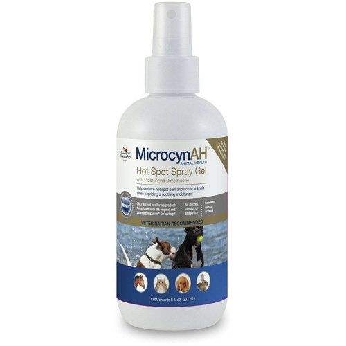 Nutri-Vet MicrocynAH Hot Spot Spray Gel - 8 ozMicrocynAH Antimicrobial Hot Spot Spray helps relive hot spot pain and itch in your pets. MicrocynAH healthcare productsformulated with the original Microcyn Technologyare the most effective formulations for management of wounds, cuts, abrasions, burns, lacerations, post-surgical sites, hot spots, as well as skin and eye irritations.