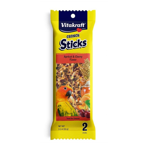 Vitakraft Crunch Sticks Apricot & Cherry Conure Treats - 2 PackVitakraft Crunch Sticks keep conures excited for snack time. Each stick features a tasty blend of seeds, honey, and fruit, triple baked for maximum crunch with a natural wood stick at the center for extended chewing.