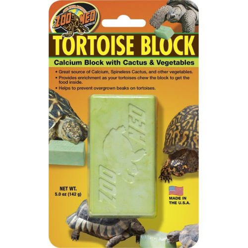 The Zoo Med Tortoise Block acts as a great source of calcium along with spineless calcium and other nutritious vegetables. Chewing the block to get at the food inside provides enrichment for your tortoises. The chewing action also helps keep beaks healthy and trim and prevents overgrowing.